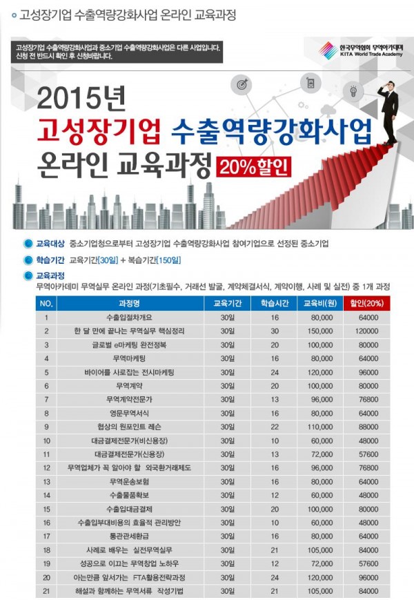 첨부와 같이 무역 아카데미 무역 실무 온라인 교육과정을 신청받고 있습니다